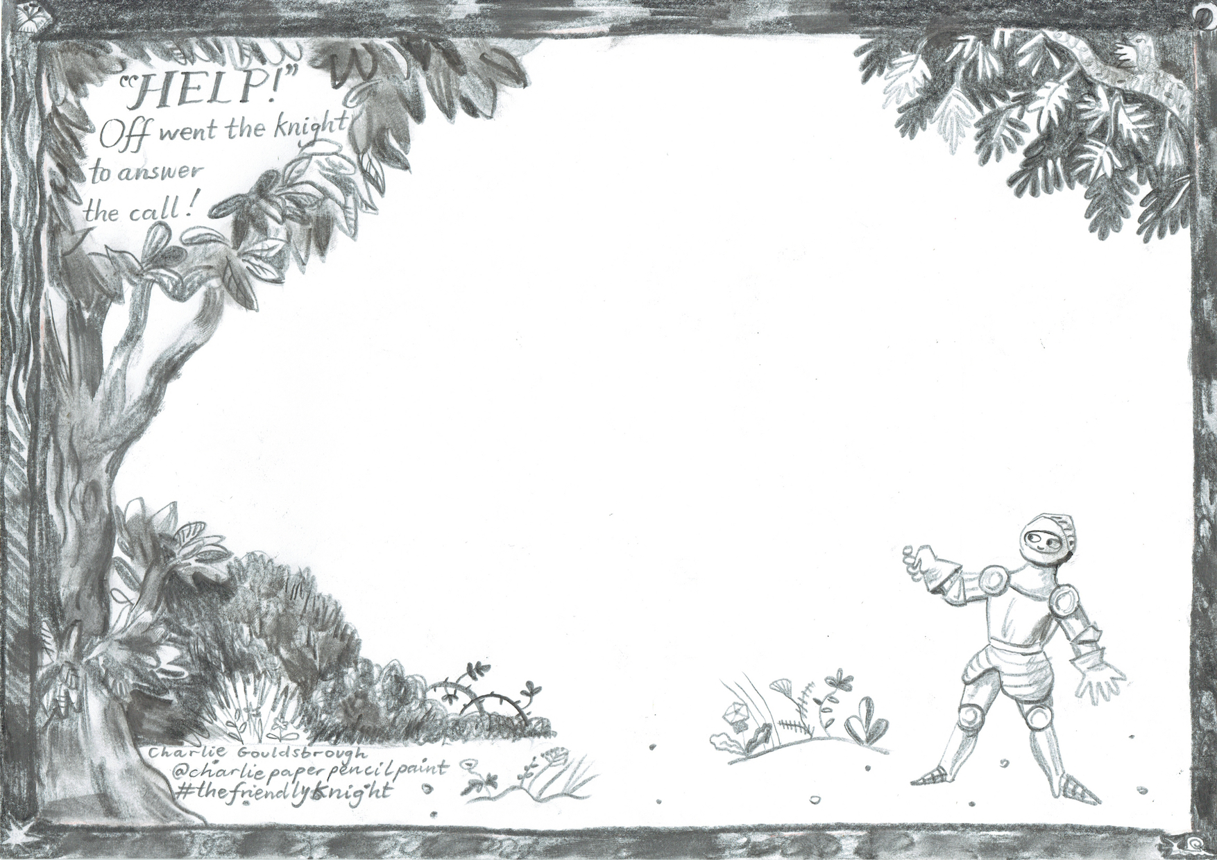 “…off went the Friendly Knight to Answer the Call!” What danger, challenges or tricks could the Friendly Knight be embarking upon as you gentle reader, fill in the mysterious blanks of the page … is it animal, vegetable or mineral?